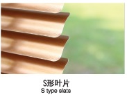 S型簾片閉合后,葉片之間彎折邊剛好重合,使得葉片與葉片間基本無縫隙,提繩孔做了隱形設(shè)計(jì),閉合后的簾面看不到梯繩孔,可以解決傳統(tǒng)百葉簾片遮光性、隱蔽性的不足,可以通過調(diào)節(jié)葉片達(dá)到98%以上的遮光率,是以往的鋁百葉及竹、木百葉簾所不能達(dá)到的;
